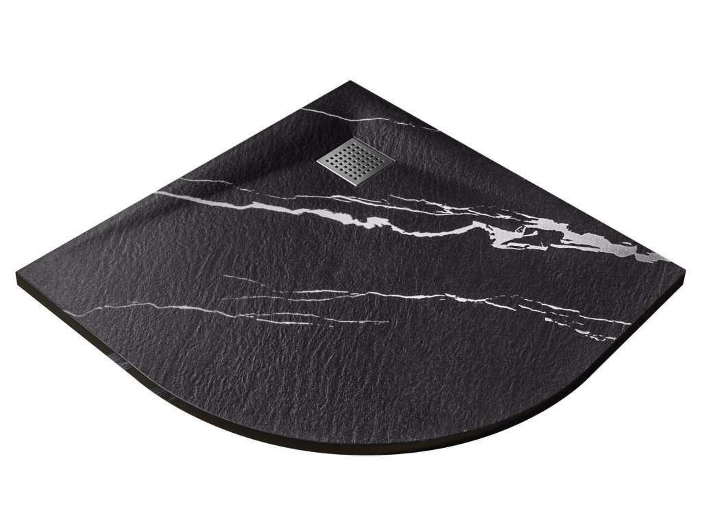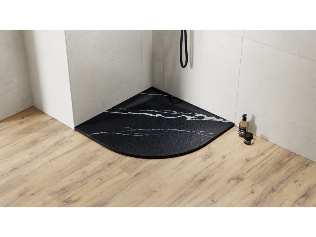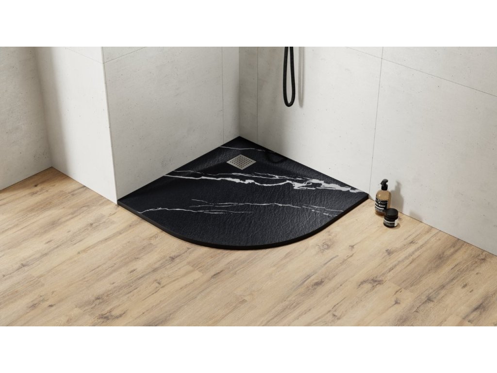 BESCO Čtvrtkruhová sprchová vanička VEXO MARBLE - černá VANKVEX90CTVRMB