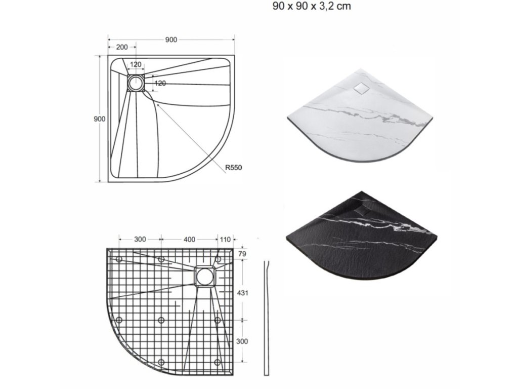 Rozměry a parametry čtvrtkruhové vaničky VEXO MARBLE: