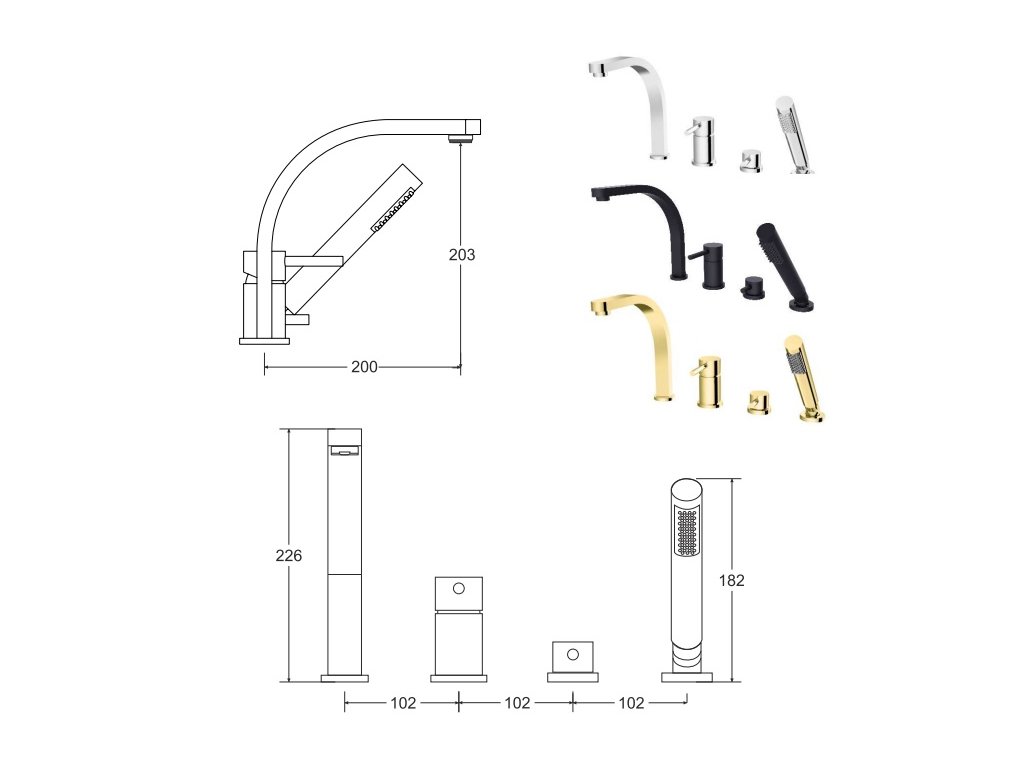 - součástí - hadice, ruční sprcha, baterie, napouštěcí hubice, přepínač