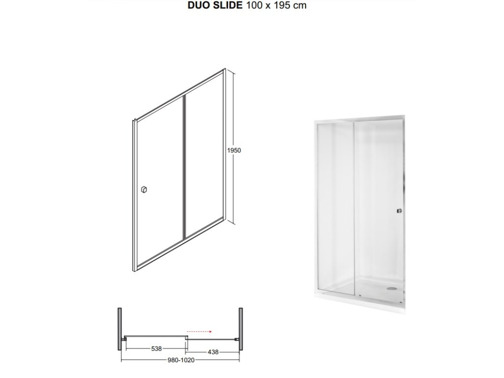 Tabulka rozměrů sprchových dveří Duo Slide