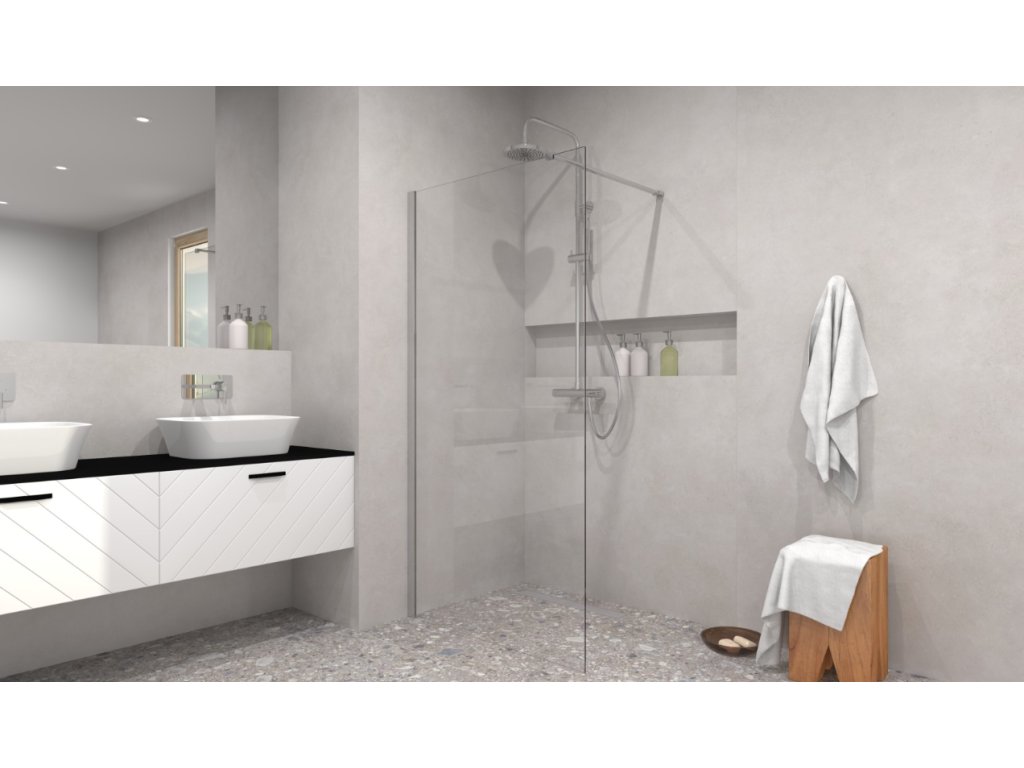 Designová varianta sprchového koutu, která se řadí mezi nejmodernější trend ve vybavení koupelen. Jedná se o otevřený sprchový kout, tvořený jednou stěnou, zabraňující nechtěnému rozstřiku vody. Voda je odváděna odtokovými kanálky, umístěnými v podlaze. Univerzální provedení pravé nebo levé varianty si dle potřeby zvolíte při montáži. Jistě oceníte i vyrovnávací profil, který umožní případné vyrovnání nerovnosti stěn. Sprchový kout Eco-N dodá Vaši koupelně na moderním a čistém vzhledu a Vaše koupelna získá ojedinělý designový nádech v nejmodernějším trendu.