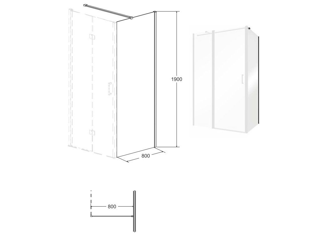 Besco Exo-CH pevný boční díl, chrom Rozměr sprch.dveří: 80cm, PCH-80-190C