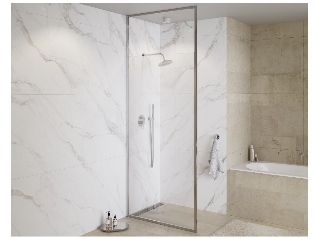 - sprchový kout Walk In s designovým provedením chromových profilů (chromového rámu)