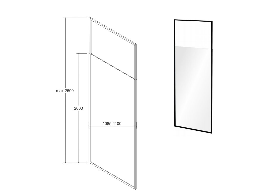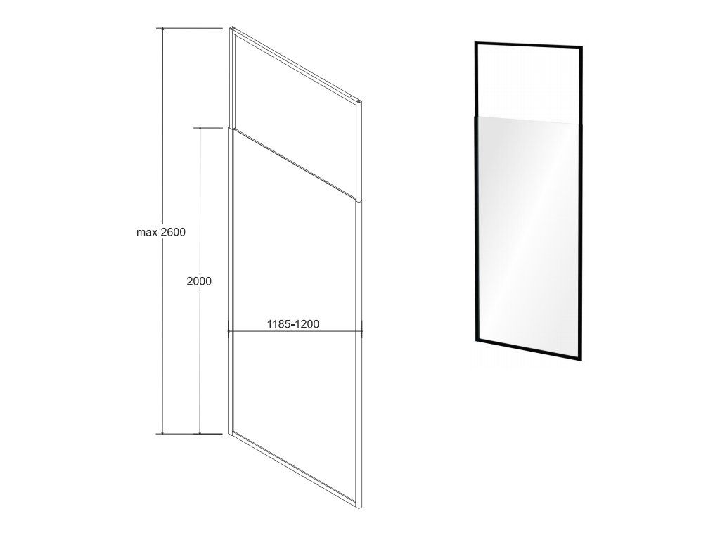 Tabulka rozměrů sprchového koutu Walk-In Icon