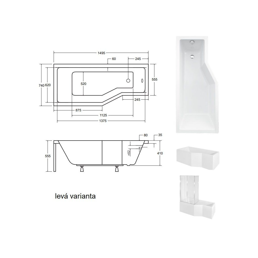 | Tvar vany: | asymetrické |