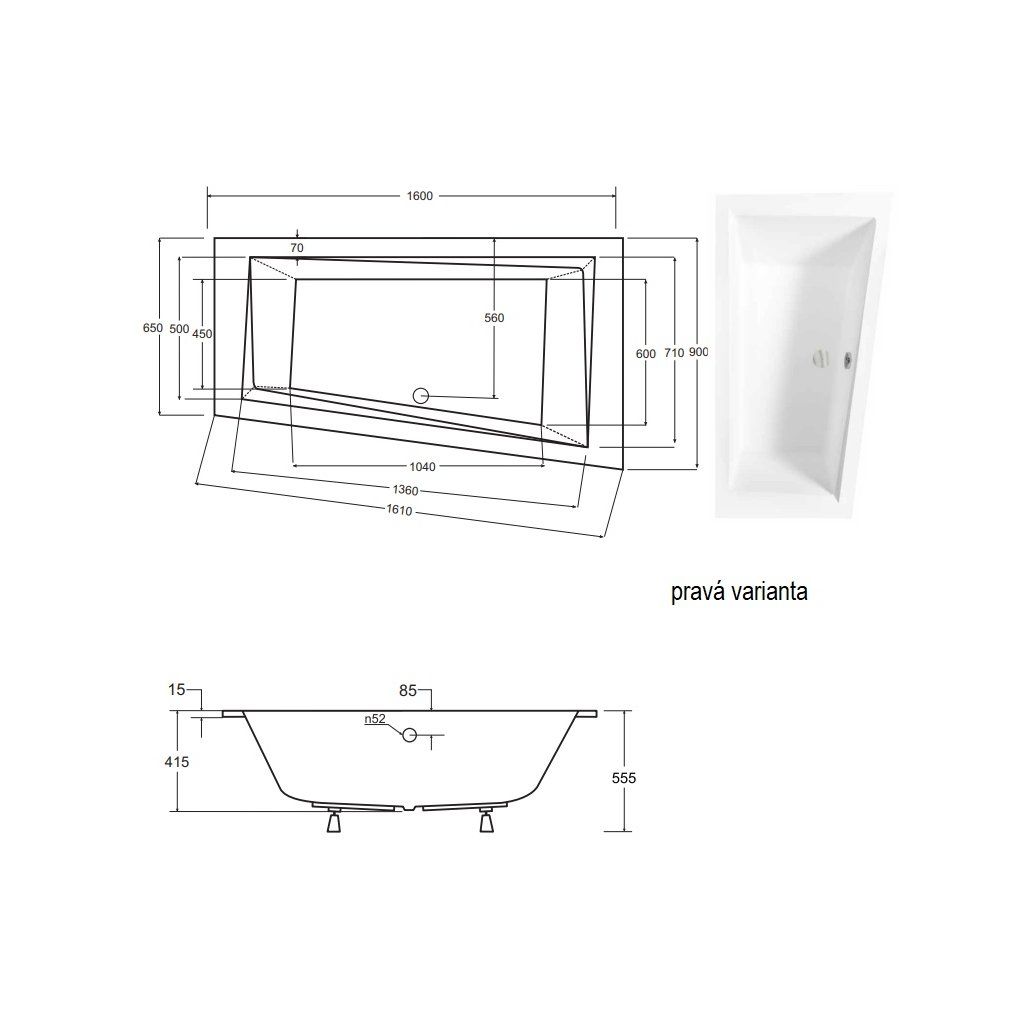- rozměry vany - 160 x 90 x 55,5 cm (včetně nožiček)