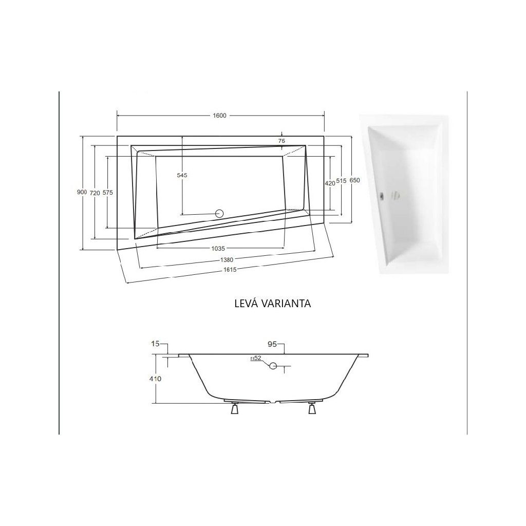 - rozměry vany - 160 x 90 x 55,5 cm (včetně nožiček)