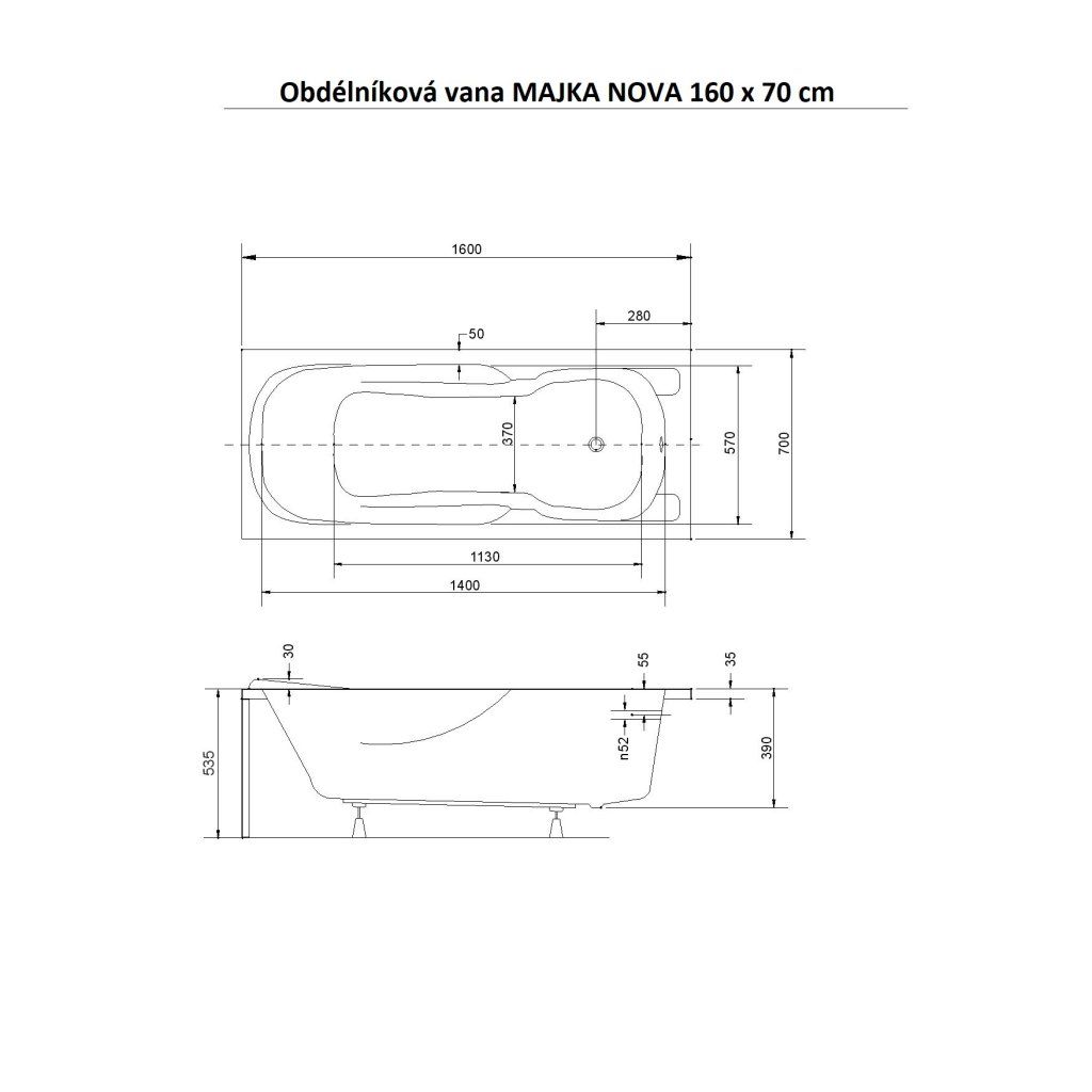 Specifikace akrylátové vany Majka Nova
