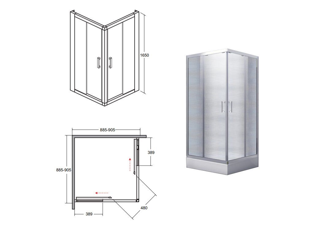 Besco Modern 165 čtvercový sprchový kout Rozměr koutu: 90x90cm, MK-90-165-C