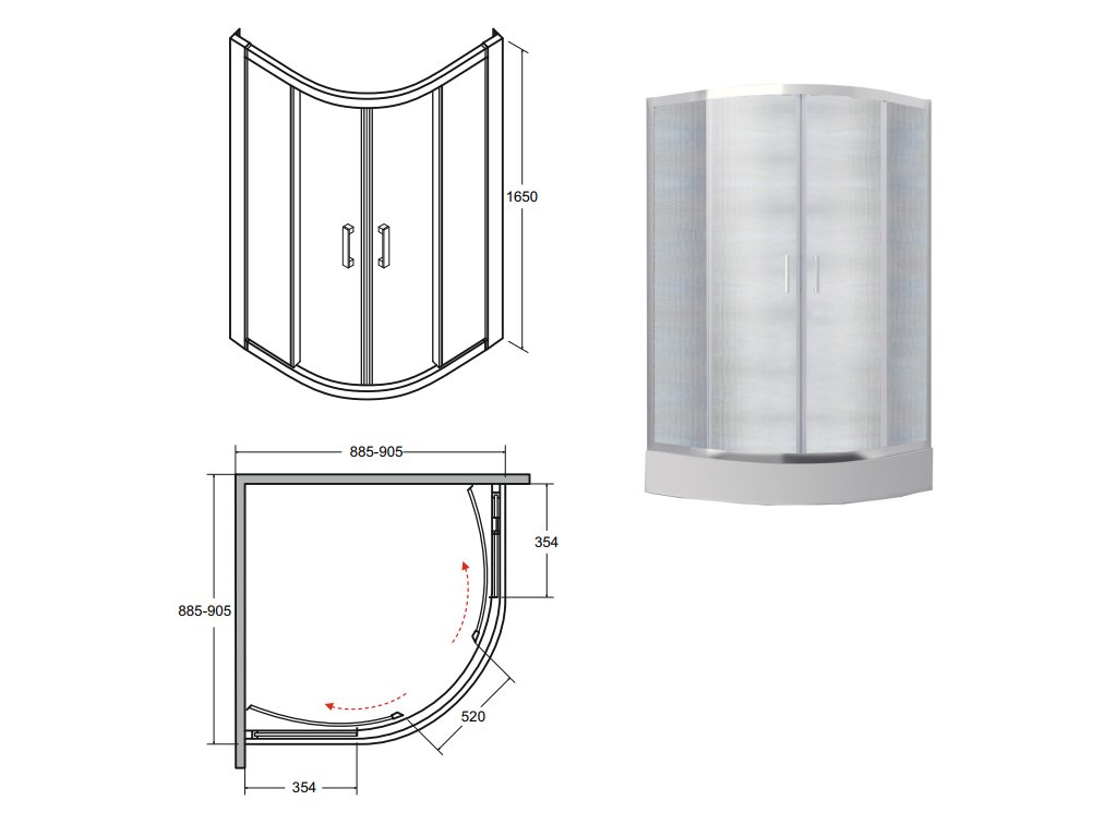 Besco Modern 165 čtvrtkruhový sprchový kout Rozměr koutu: 80x80cm, MP-80-165-C