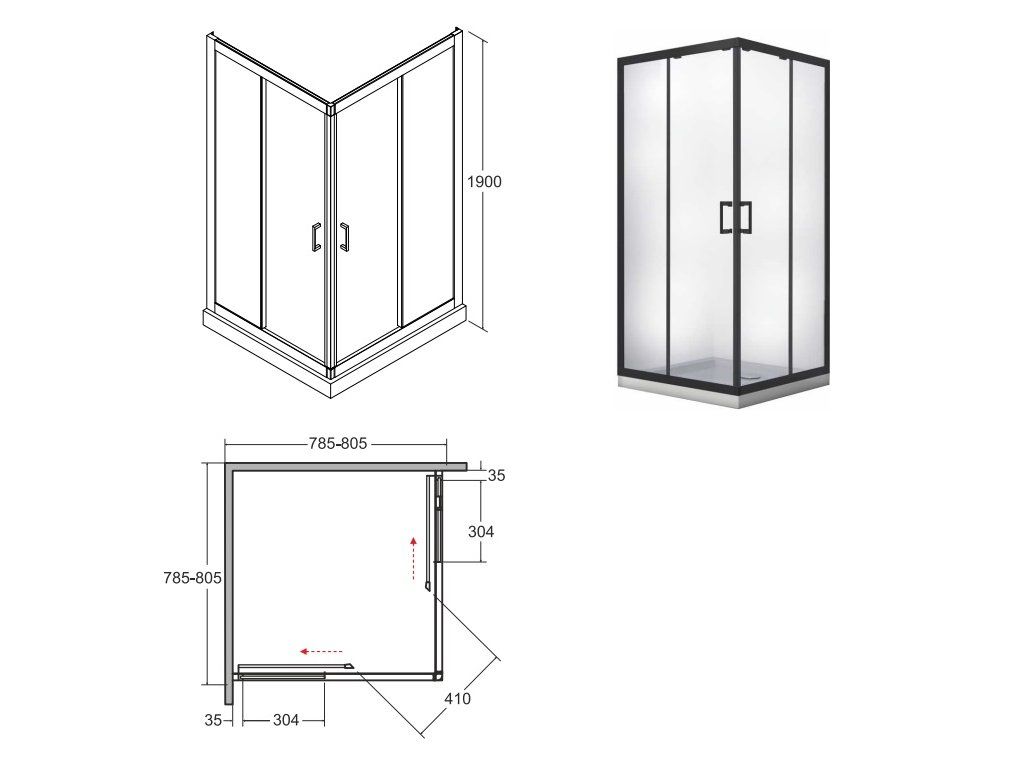 Besco Modern 190 čtvercový sprchový kout, black Rozměr koutu: 80x80cm, MKB-80-190-C