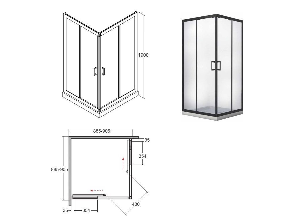- šíře vstupu u rozměru 80 cm - 41 cm, šíře vstupu u rozměru 90 cm - 48 cm