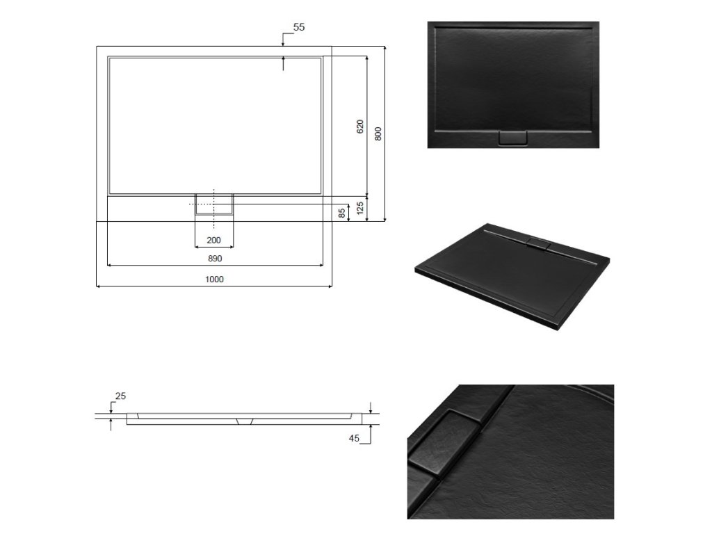 - 1000 x 800 x 45 mm