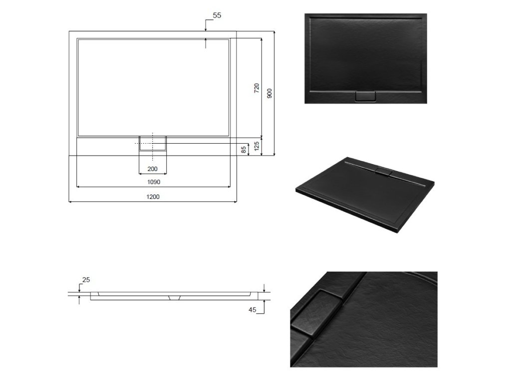 BESCO Obdélníková sprchová vanička AXIM - STONE EFFECT Barva - Stone efect, Rozměr A - 120, Rozměr B - 90 VANKAXIM1290S