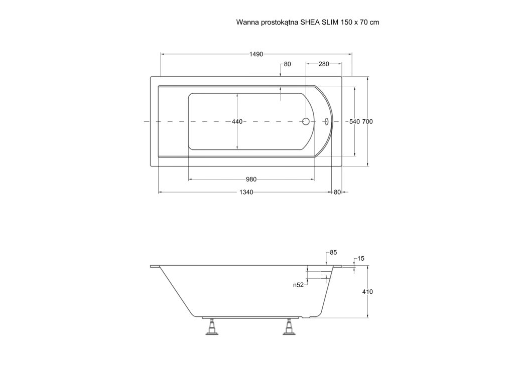 BESCO Obdélníková vana SHEA SLIM Nožičky k vaně - Bez nožiček, Rozměr vany - 150 × 70 cm VANSHEA150SLIM