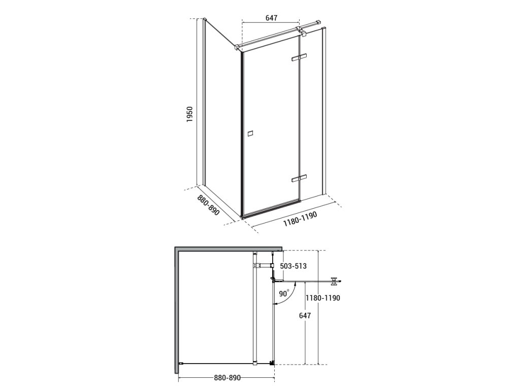 - 120 × 90 × 195 cm (montážní rozměr 118 - 119 × 88 - 89 cm)