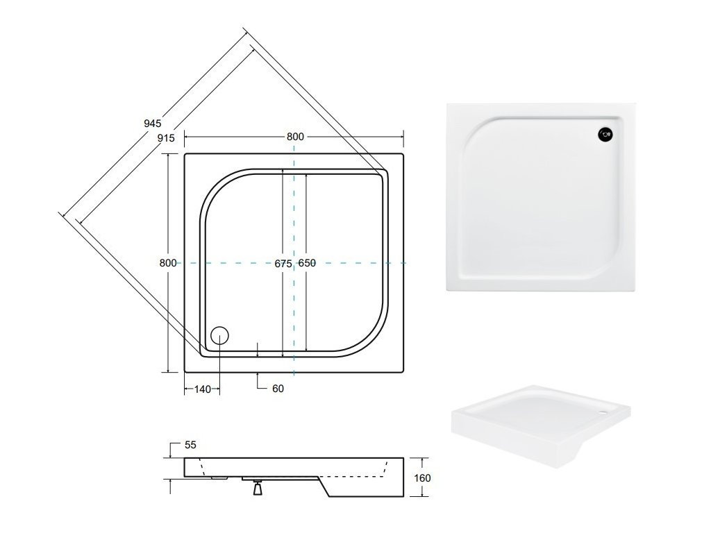 • čtverec 800 × 800 × 160 mm
