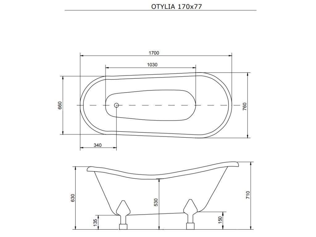 Besco Otylia volně stojící vana, chromové nohy Délka vany: 170cm, WKO-170W-CH