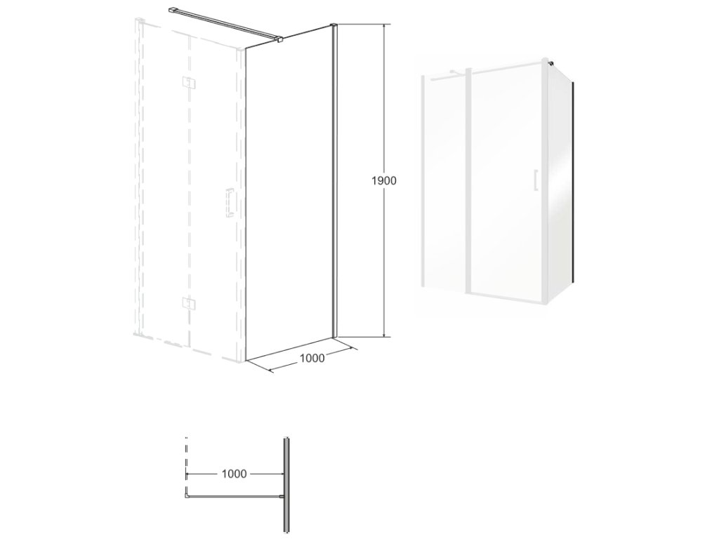 Rozměr pevné stěny 100 x 190 cm (výška): montážní rozměr: 98,5 - 100 x 190 cm