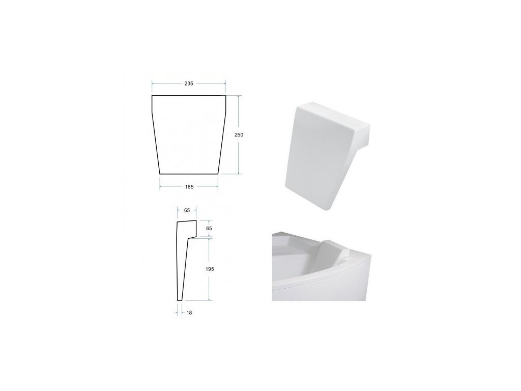 Podhlavník je nezbytným doplňkem každé stylové vany. Dokonale tvarovaný s příjemnou povrchovou úpravou perfektně fixuje hlavu při uvolňujících koupelích. Podhlavník je dodáván v bílé barvě.