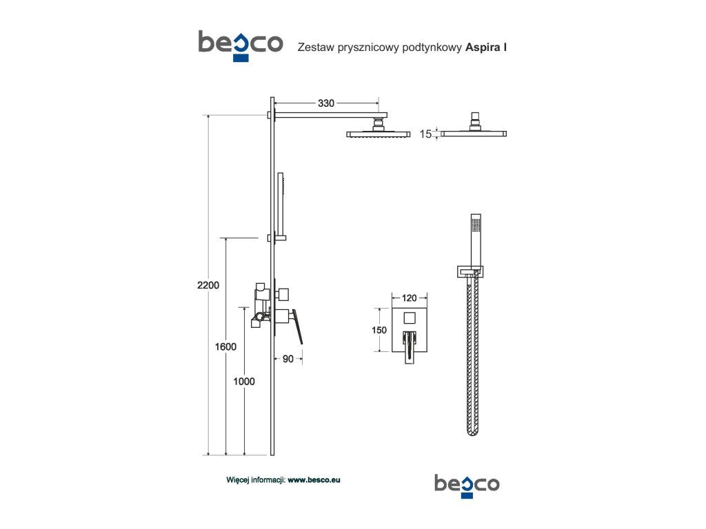 - Set obsahuje podomítkovou baterii, hlavovou sprchu s držákem, vývod ze stěny s držákem, ruční sprchu a hadici