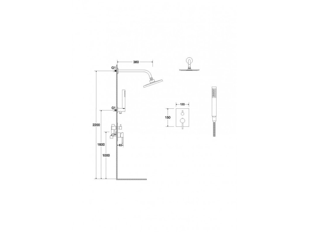 - Set obsahuje podomítkovou baterii, vývod ze stěny, ruční sprchu, hadici sprchy a držák