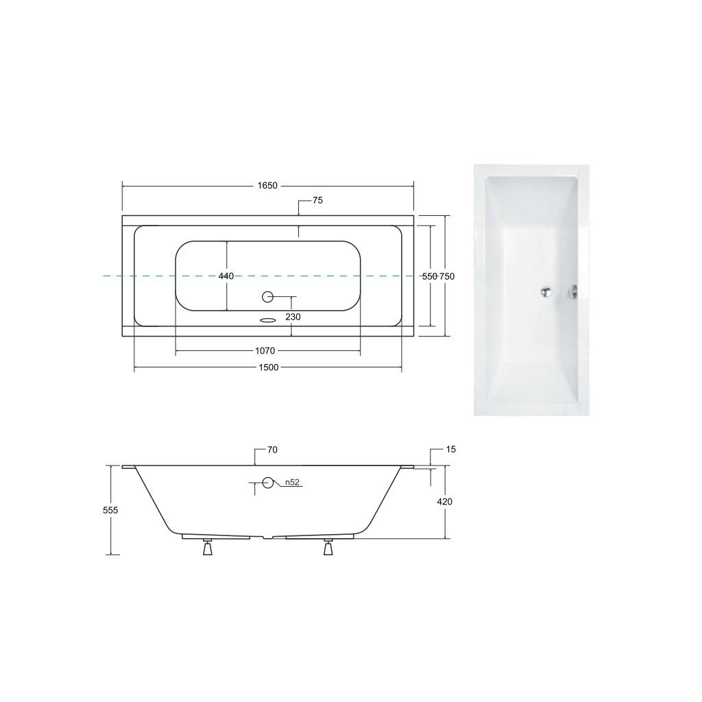 Besco Quadro Slim 165x75, 170x75 akrylátová vana Délka vany: 170cm, WAQ-170-SLL