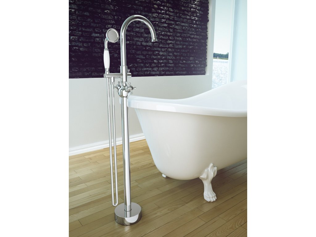 Retro designová vanová stojanová baterie v ojedinělém stylu je ideálním doplňkem k volně stojícím vanám v prostoru. Hodí se do retro koupelen, ale i do koupelen moderních. Tato baterie doladí Vaši koupelnu k dokonalému vzhledu.