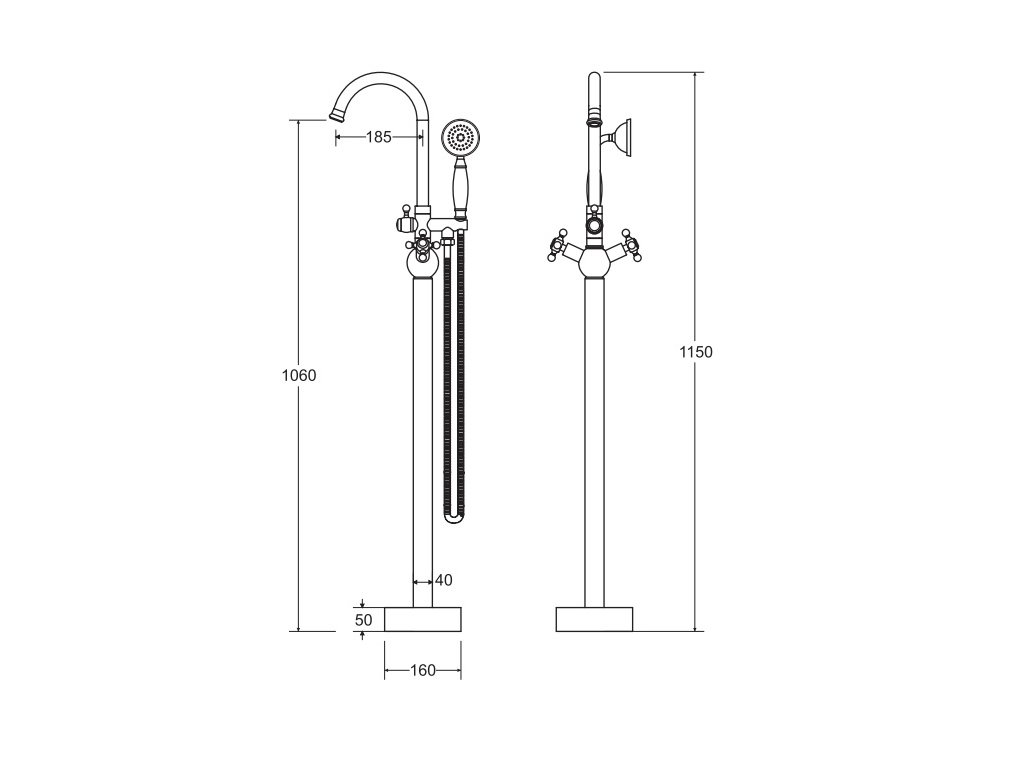 Retro designová vanová stojanová baterie v ojedinělém stylu je ideálním doplňkem k volně stojícím vanám v prostoru. Hodí se do retro koupelen, ale i do koupelen moderních. Tato baterie doladí Vaši koupelnu k dokonalému vzhledu.