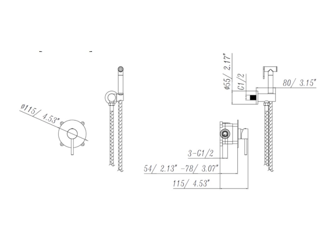 - Set obsahuje vývod ze stěny s držákem, ruční sprchu a hadici