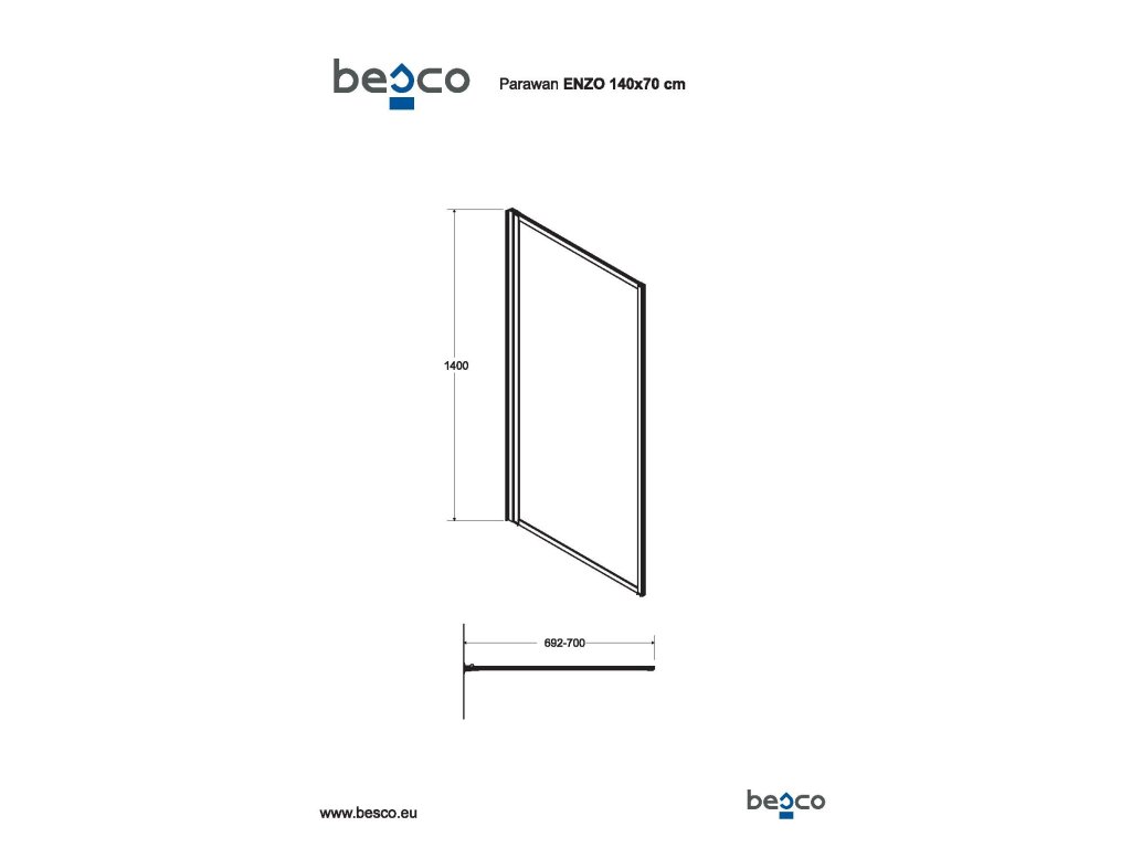 BESCO Vanová zástěna ENZO Barva rámu - Černá matná, Rozměr A - 70 , Směr zavírání - Univerzální Levé / Pravé, Výplň - Čiré bezpečnostní sklo - 4 mm BCENZO70BC