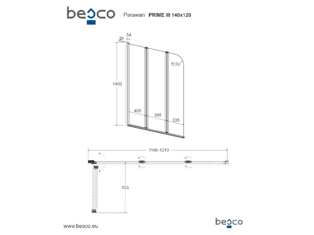 BESCO Vanová zástěna PRIME 3 Barva rámu - Chrom/Leštěný hliník (ALU), Rozměr A - 120, Směr zavírání - Univerzální Levé / Pravé, Výplň - Čiré bezpečnostní sklo - 5 mm BCPRIM12CC