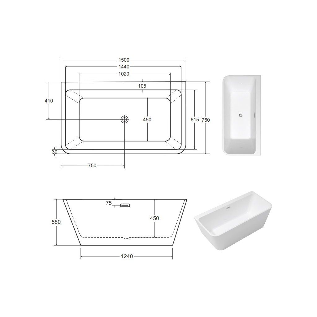 Specifikace volně stojící akrylátové vany Varya 150x75