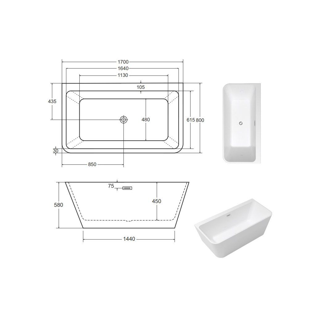 Specifikace volně stojící akrylátové vany Varya 170x80