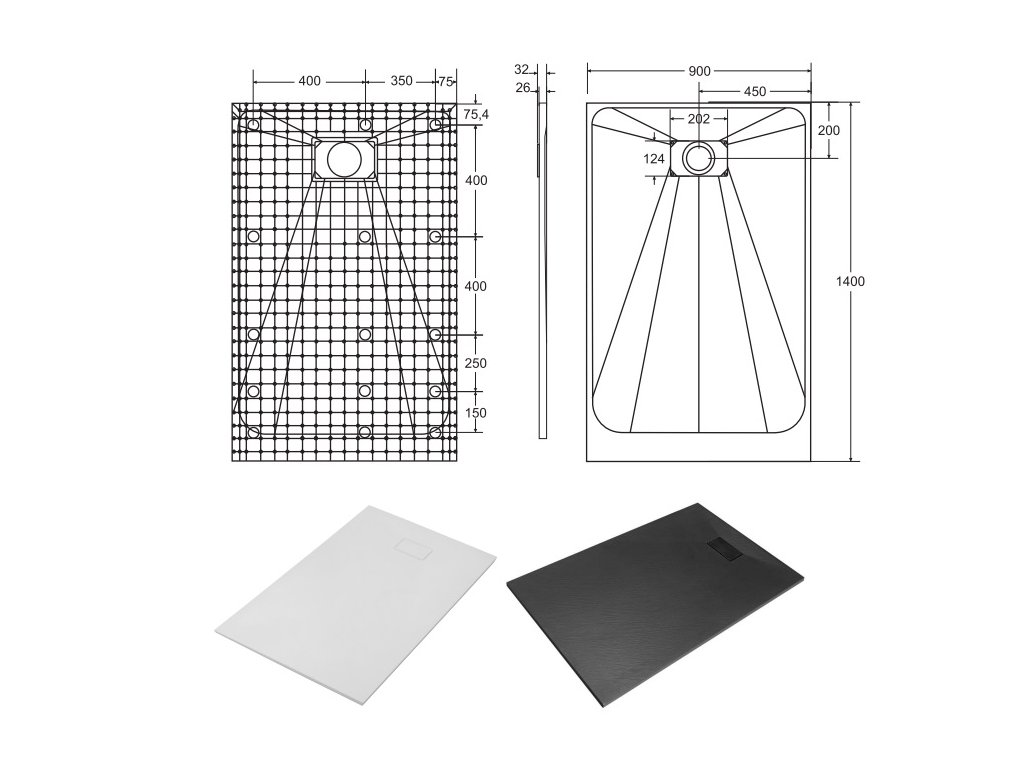- obdélníková designová sprchová vanička