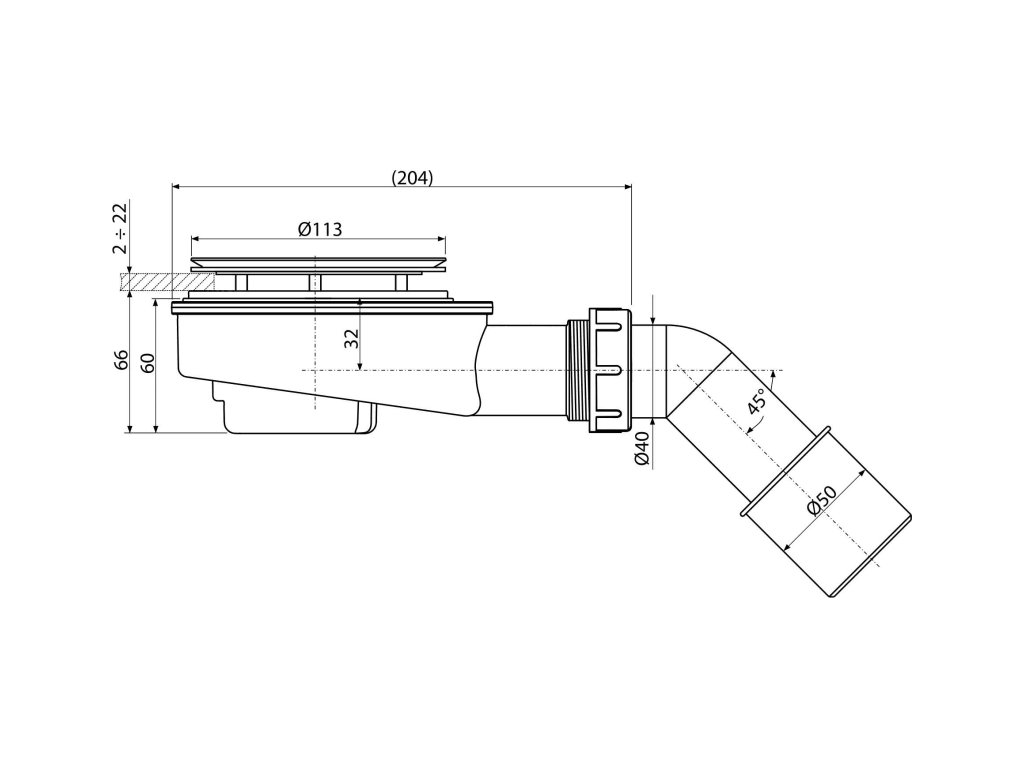 - odtok ø 90 mm