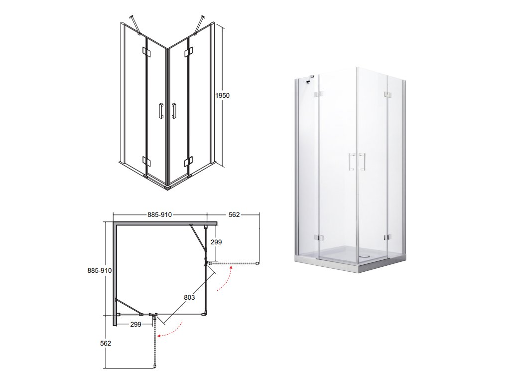 - šířka vstupu u varianty 90x90 - 80 cm