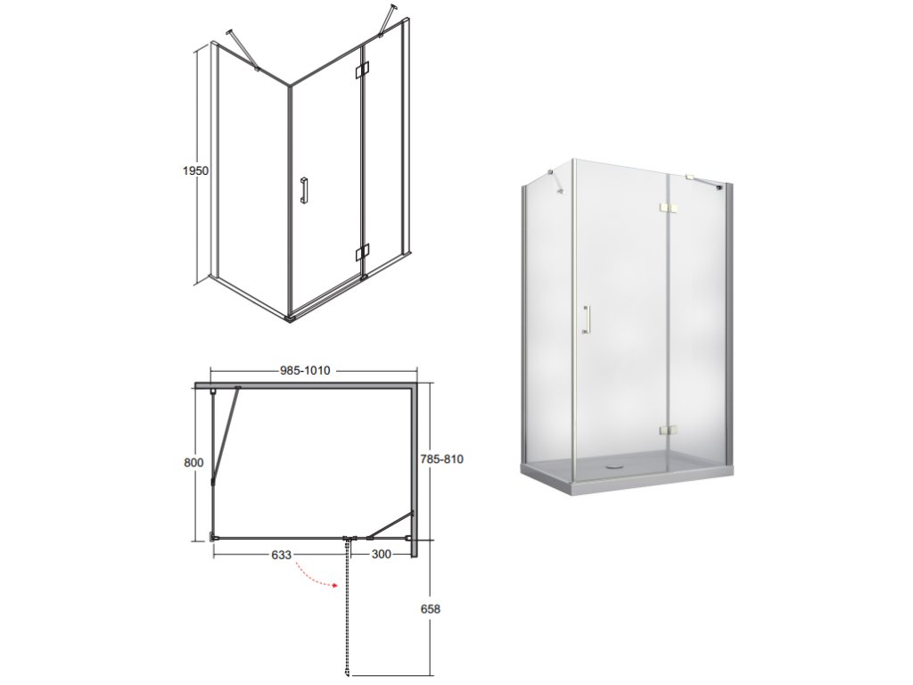 Bezrámový obdélníkový sprchový kout s čirým sklem o tloušťce 8mm, na kterém je speciální úprava, která usnadňuje čištění skla. Sprchový kout se otevírá do prostoru a je možná pravá i levá varianta. Kvalitní chromované panty a magnetické těsnění zajistí špičkovou eleganci a funkčnost. Díky chromované okapničce se voda odvede vždy do vaničky.