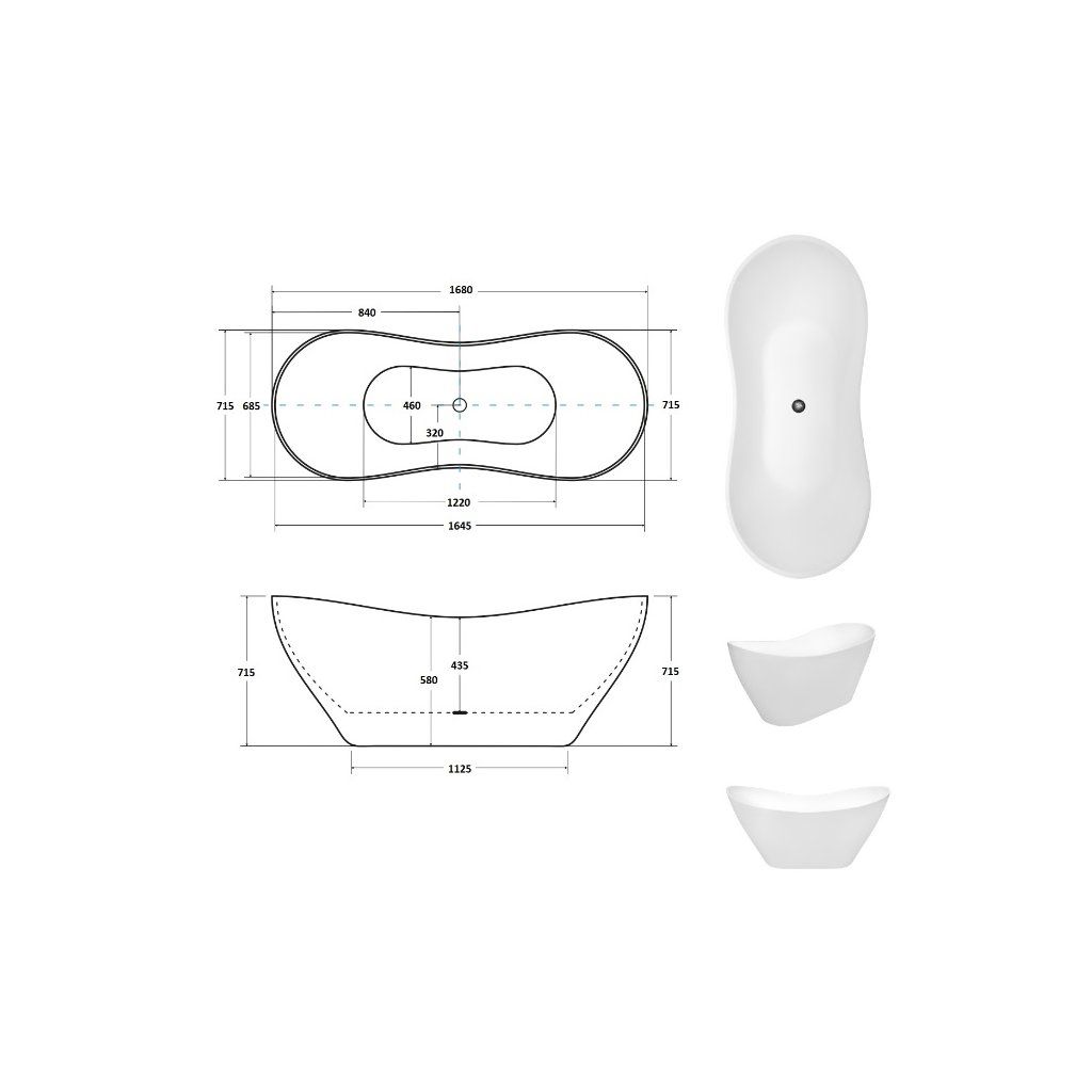 Specifikace volně stojící vany Viya Black&White 160x70