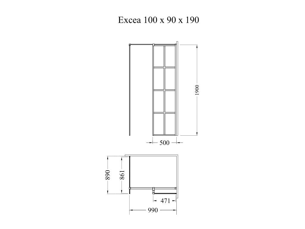 BESCO Walk-in sprchová zástěna EXCEA Barva rámu - Černá, Rozměr A - 100, Rozměr B - 90, Rozměr C - 190, Směr zavírání - Univerzální Levé / Pravé, Výplň - Čiré bezpečnostní sklo - 8 mm BCEXCEA9010