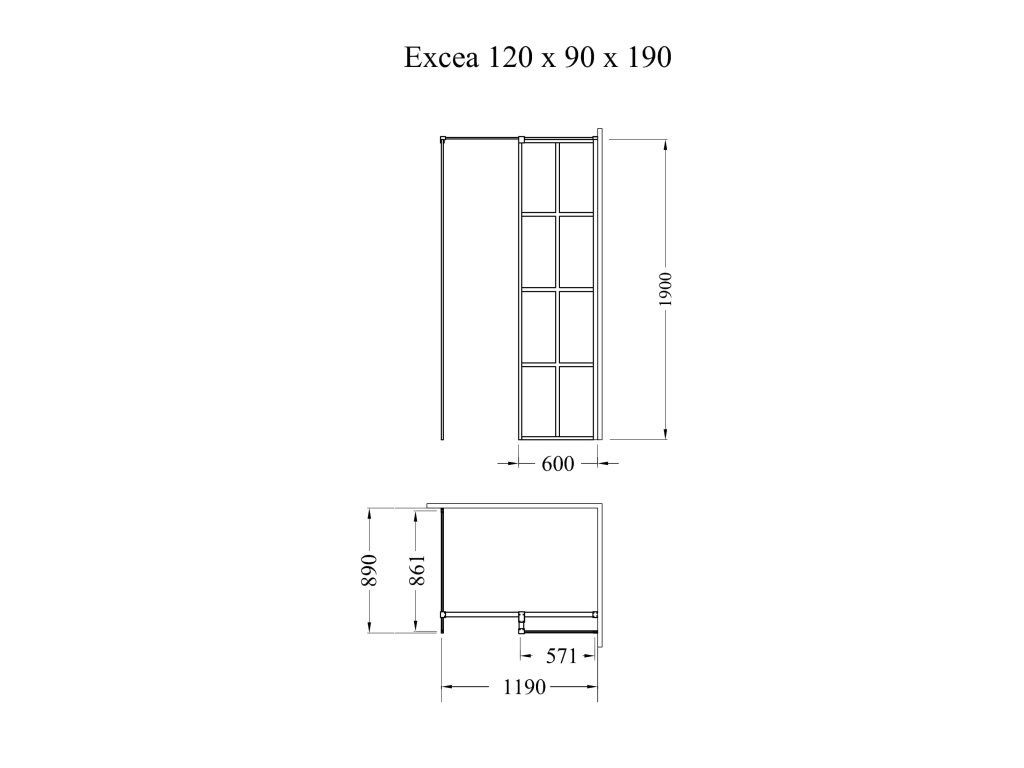 BESCO Walk-in sprchová zástěna EXCEA Barva rámu - Černá, Rozměr A - 120, Rozměr B - 90, Rozměr C - 190, Směr zavírání - Univerzální Levé / Pravé, Výplň - Čiré bezpečnostní sklo - 8 mm BCEXCEA9012