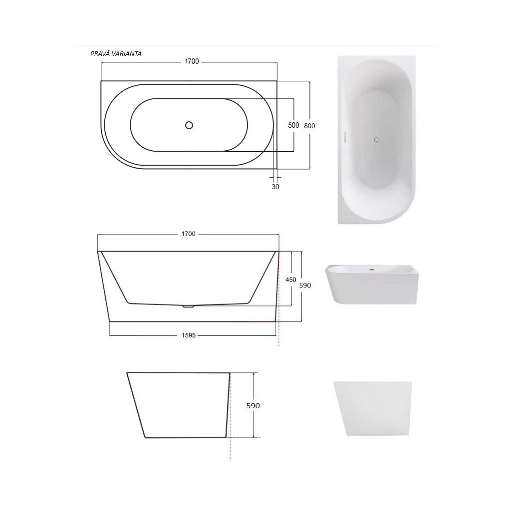 Besco Zoya volně stojící akrylátová vana 170x80 Orientace: Pravá, WAS-170-ZP