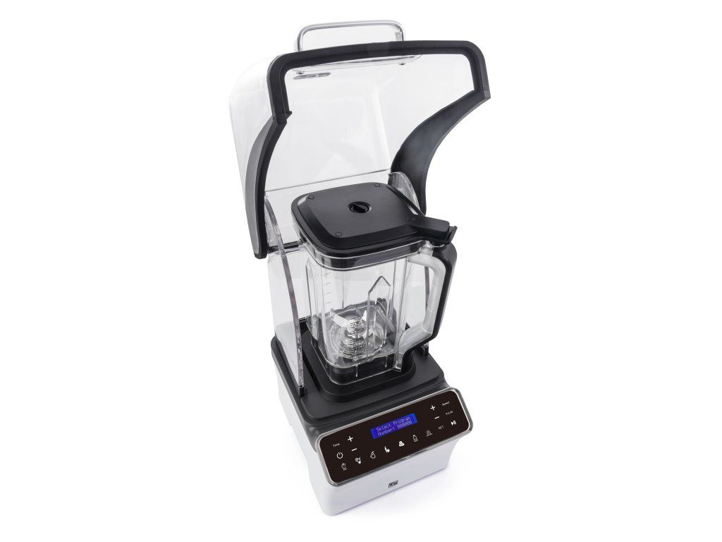 Po uzavření mixovací nádoby se surovinami sklopíte odhlučňovací kryt, jedním dotykem spustíte vakuování a poté můžete mixovat.