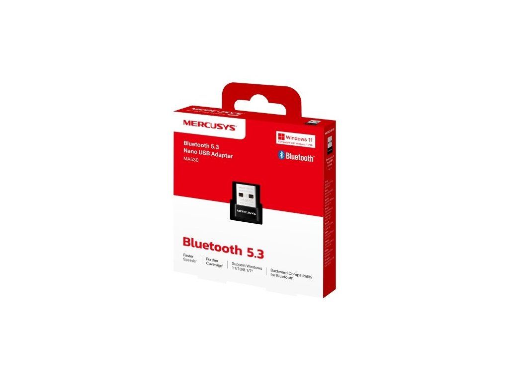 Nano USB adaptér Mercusys MA530 s technologií Bluetooth 5.3 zajistí rychlé a spolehlivé bezdrátové připojení mezi počítačem a Bluetooth zařízeními. Díky miniaturním rozměrům ho můžete nechat neustále zapojený v USB portu. Snadno si ho vezmete s sebou na cesty. Adaptér funguje na operačním systému Windows 11/10/8.1/7. Velkou výhodou je také podpora zařízení se staršími verzemi Bluetooth.
