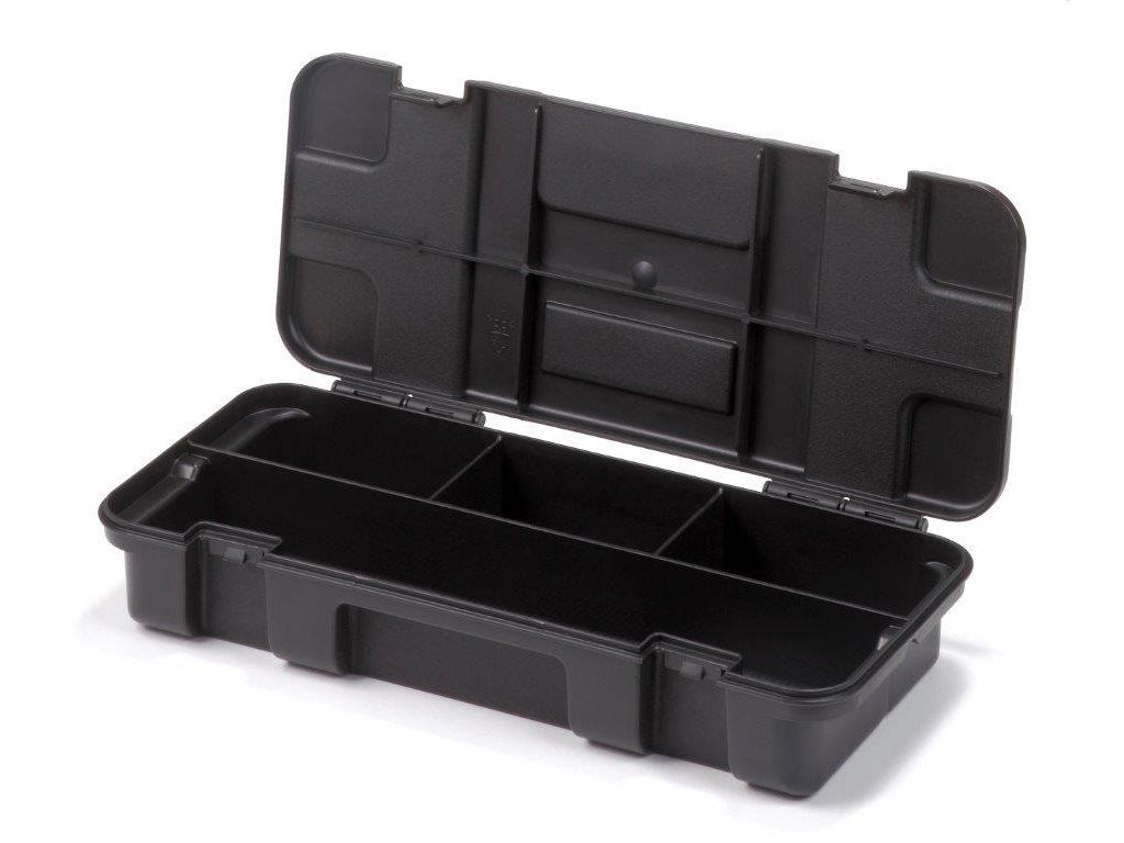 Přepážky vám umožní přizpůsobit si vnitřní prostor boxu podle typu nářadí. Kovové západky zajistí pevné uzavření kufru. V případě, že chcete mít přístup k nářadí jen vy, uzamkněte box klasickým visacím zámkem. Ten si ovšem musíte dokoupit zvlášť. Praktické madlo vám navíc zjednoduší jeho přenášení a manipulaci.