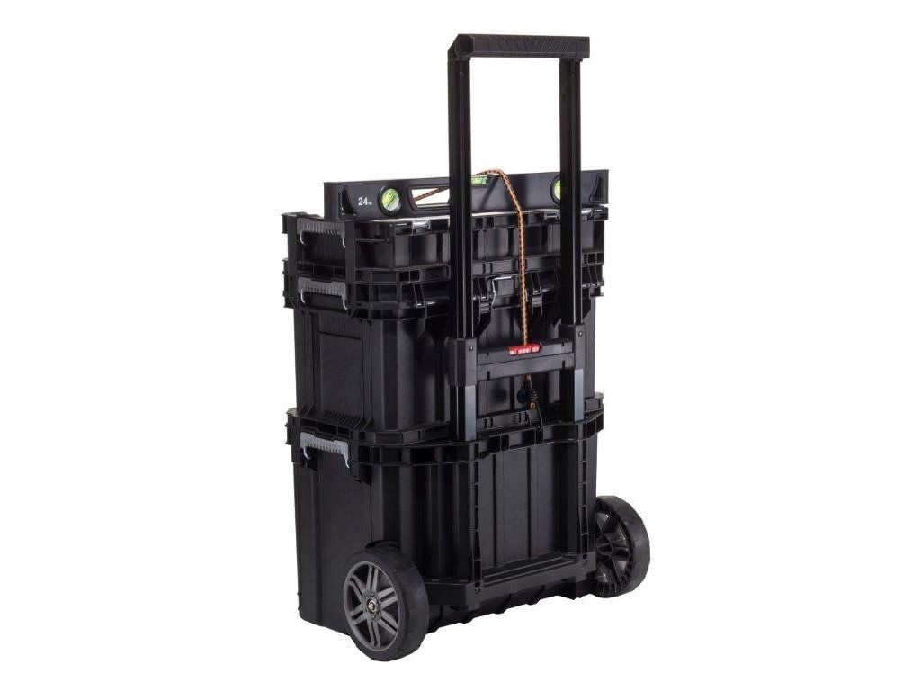 Box na kolečkách Keter Connect Rolling Set využijete pro uskladnění dílenského nářadí, jako jsou kleště, klíč, kladivo, vrtačka a další řemeslné pomůcky. Tato sada se skládá z praktického vozíku, organizéru a úložného boxu s odnímatelným tácem na odkládání náčiní. S novým vybavením máte vše po ruce, kdykoliv potřebujete.