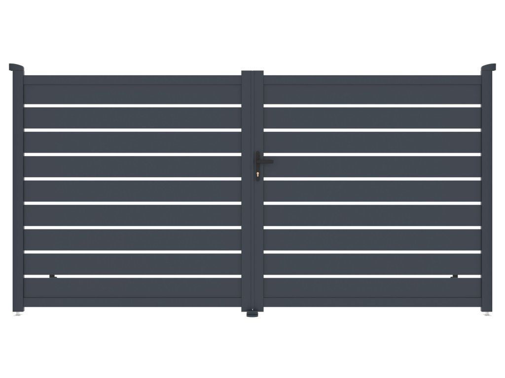 Vjezdovou bránu Reno jsme vyrobili z lehkého, pevného a hlavně bezúdržbového hliníku. Je odolný vůči prasknutí i prohnutí, nezreziví a antracitový odstín, nanesený práškovým nástřikem, dodává vjezdové bráně atraktivitu a stálobarevnost. Zesílený profil dvoukřídlé vjezdové brány Reno vám navíc v budoucnu umožní montáž elektrického otevírání.