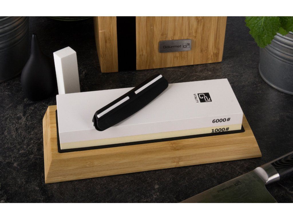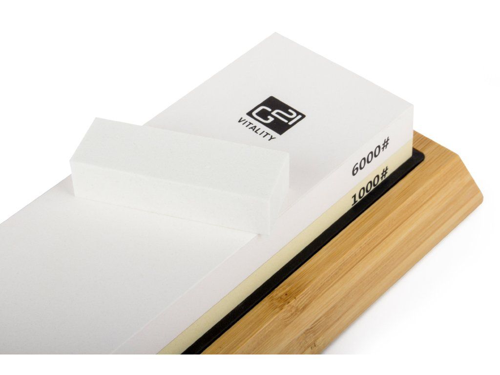 Pro dokonalé ruční broušení nožů, nůžek, dlát i řezbářských nebo zahradních nástrojů použijte špičkový oboustranný brusný korundový kámen se zrnitostí 1000# a 6000# pro konečné jemné dobroušení a přeleštění.