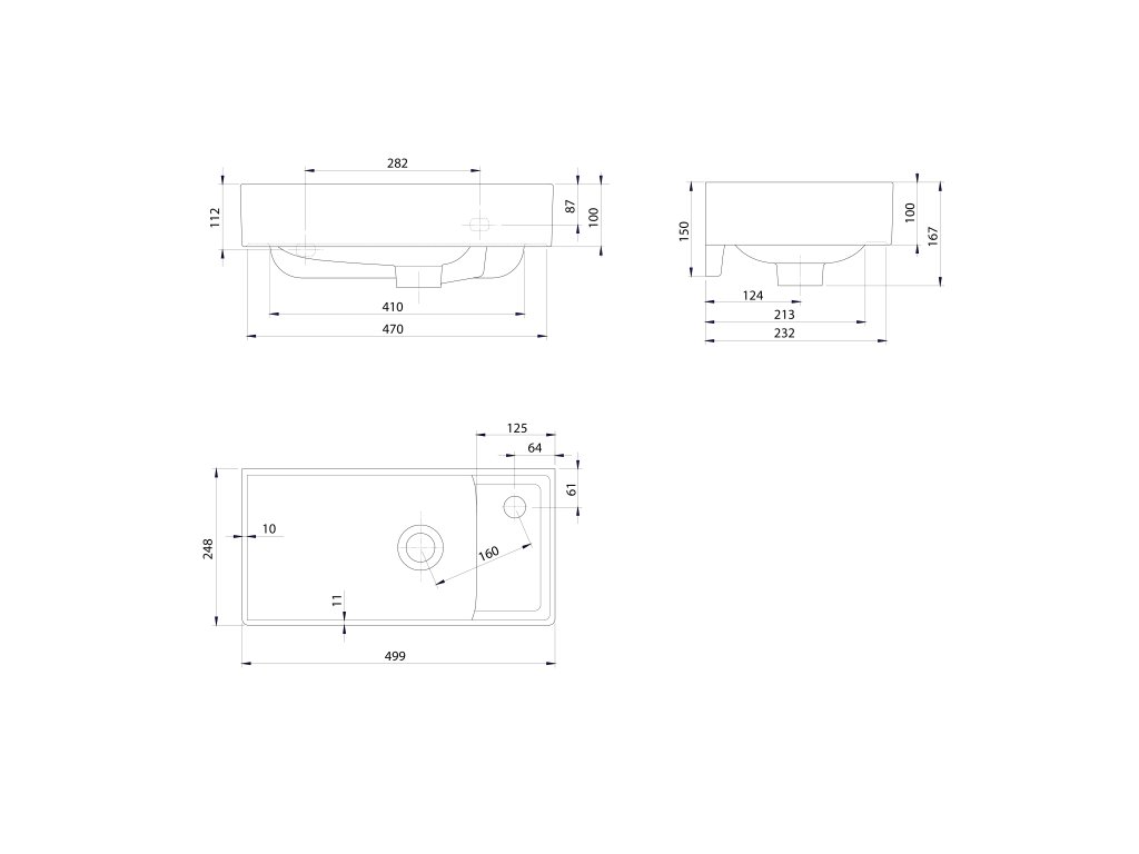 CERASTYLE NUALI keramické umývátko 50x25cm, baterie vpravo, bílá TU0122