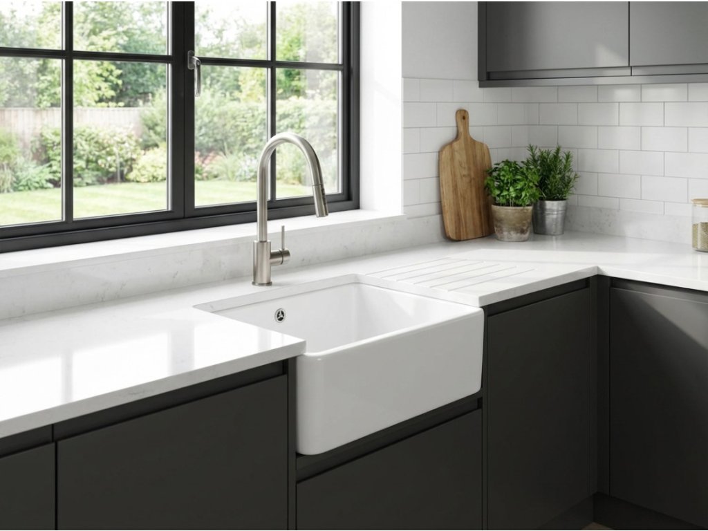 - bílý keramický dřez